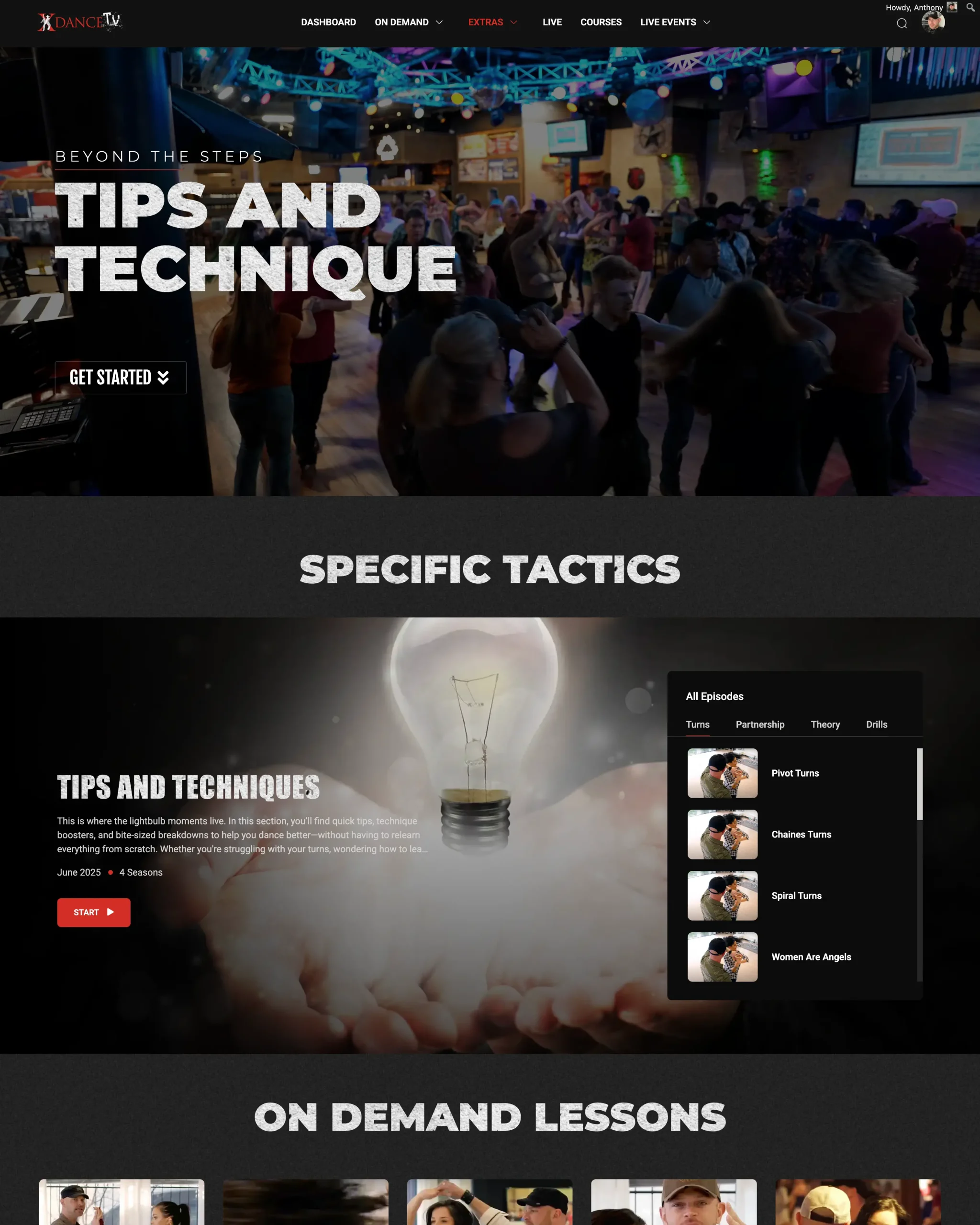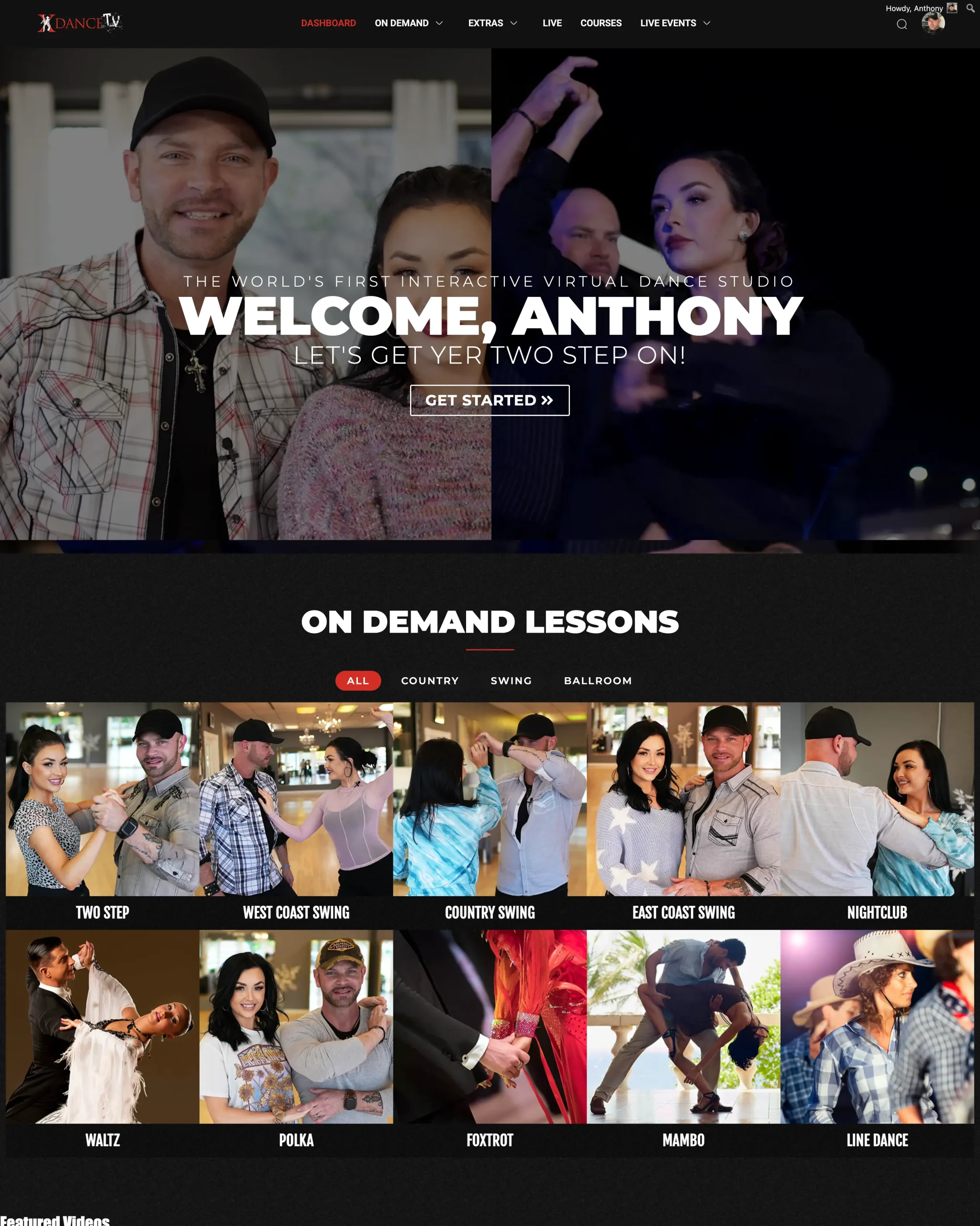 X Dance TV is the world’s first interactive virtual dance studio. Learn real partner dancing from Anthony and Rose with step-by-step, choose-your-own-path lessons you can use immediately on the dance floor. Start with a 7-day free trial and explore on-demand lessons, live stream classes, and interactive Two Step instruction designed for real people who want to actually dance.